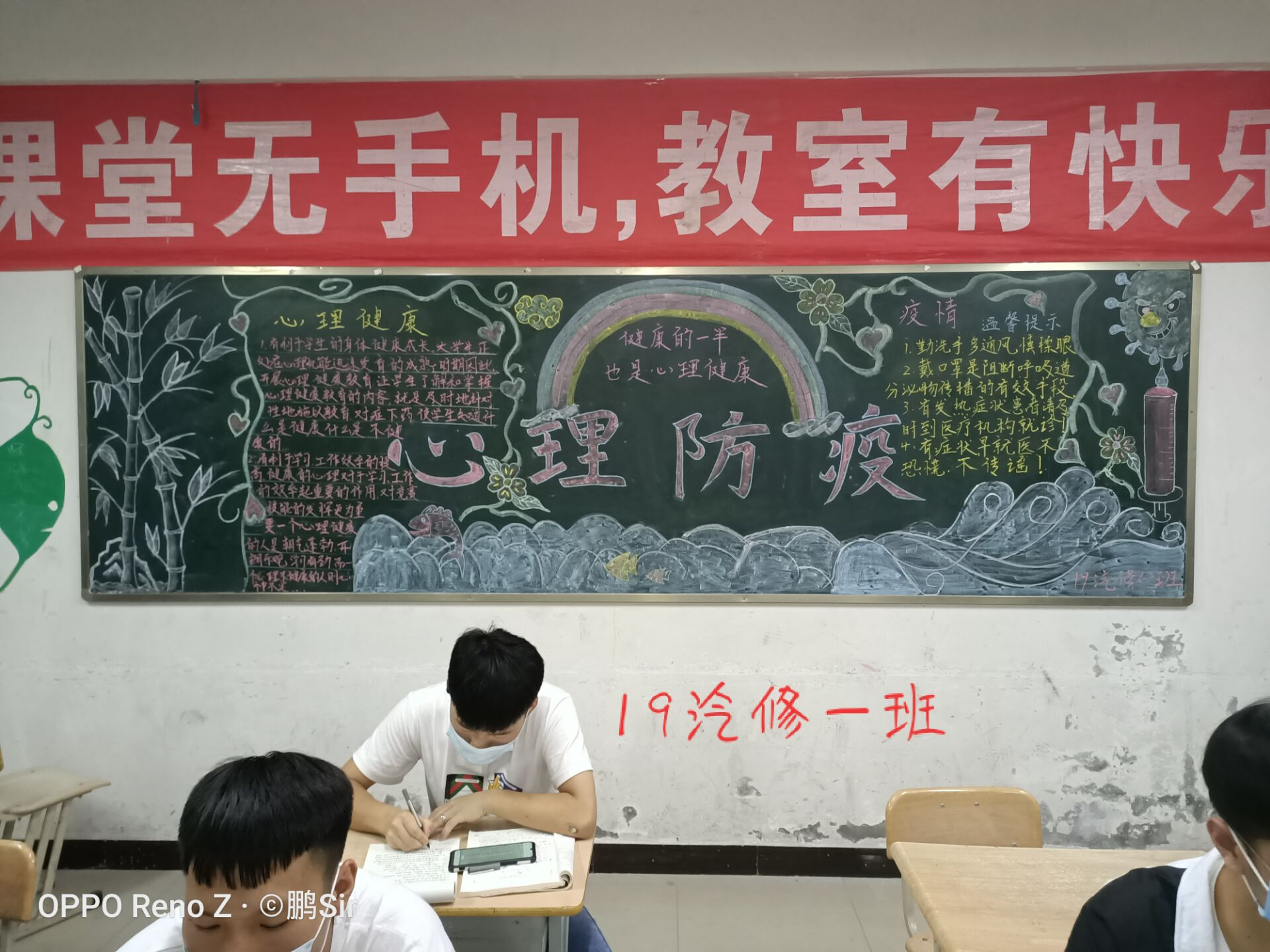 疫情期間,為了返校的大學生有更好的心理健康,提高大學生心理素質(zhì),6月8日我系分團委組織各班開展以“心理防疫”為主題的團日活動,相應開展了“心理防疫”黑板報班級比賽。
