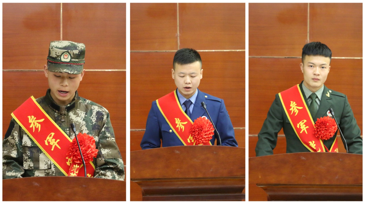 機(jī)械制造系學(xué)生張進(jìn)和電子信息工程系學(xué)生藺煜明分別代表2019年、2020年退役復(fù)學(xué)學(xué)生發(fā)言,他們講述了自己的從軍經(jīng)歷和退伍感想,表達(dá)了“退役不退志、退伍不褪色”的學(xué)習(xí)生活態(tài)度,并向新入伍的同學(xué)們送去了真誠的祝福。