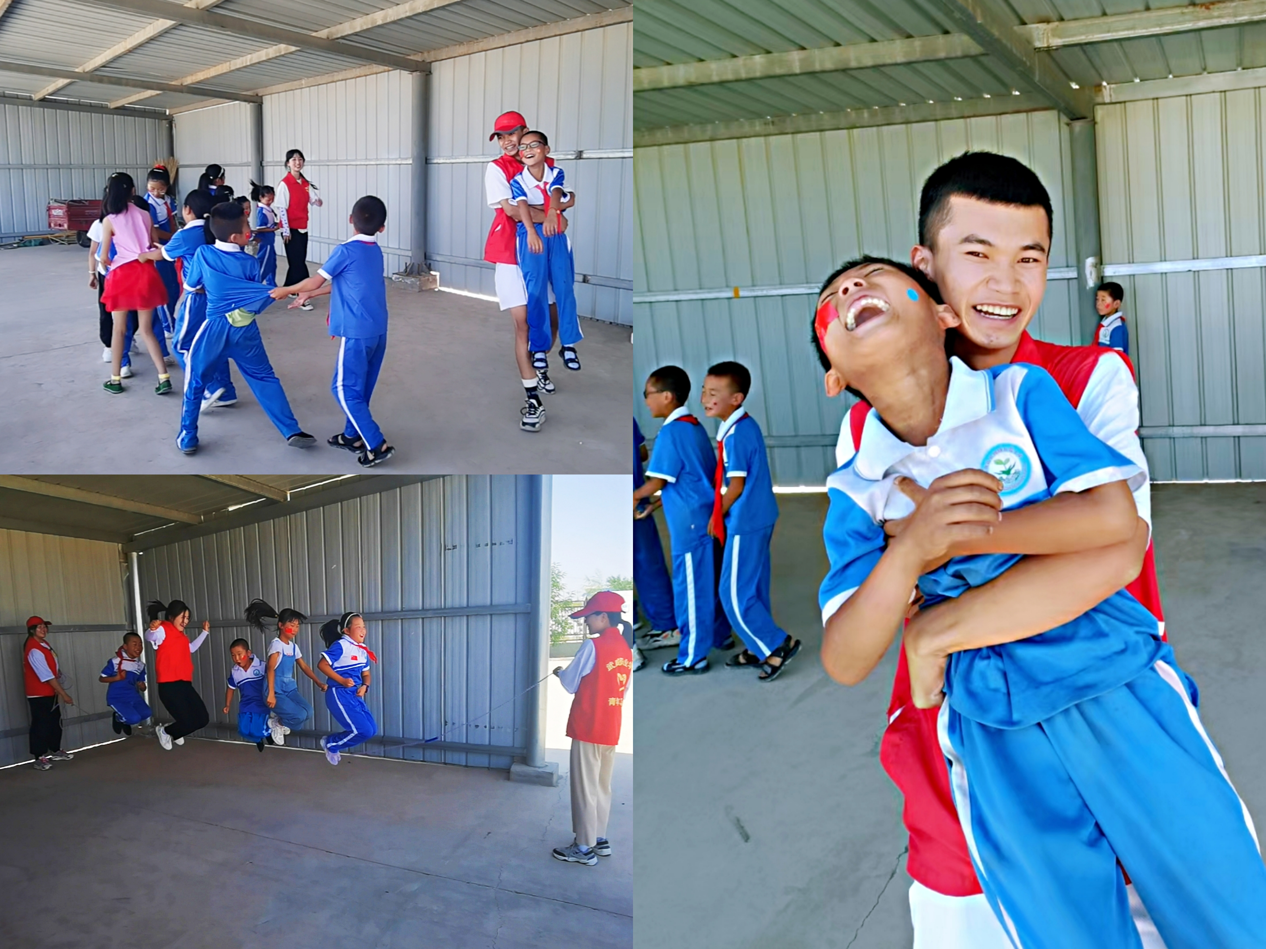 隊(duì)員們和小朋友們一起玩了很多游戲,大家都沉浸在快樂之中,歡聲笑語響徹整個(gè)校園。
