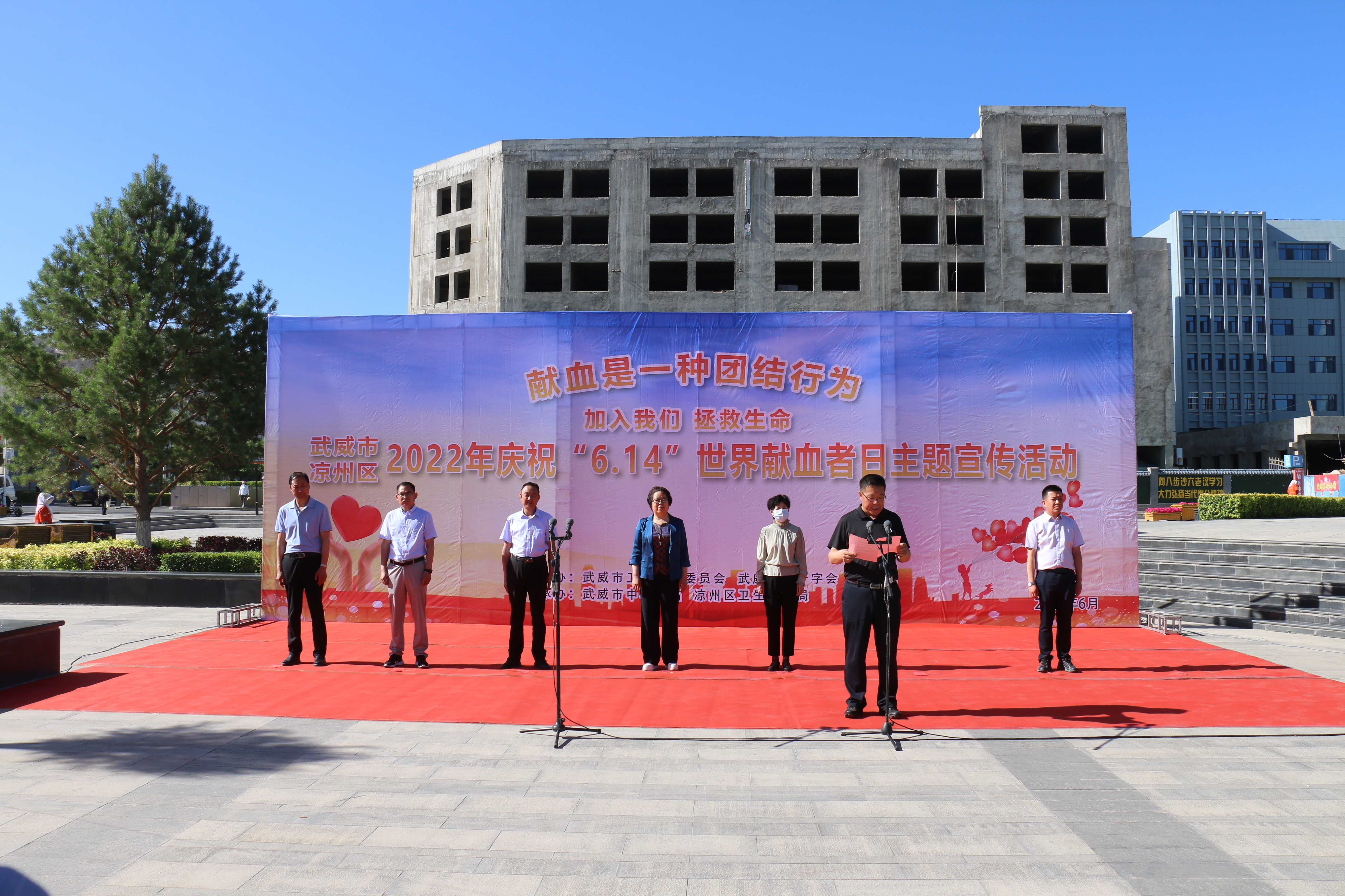6月14日上午,由市衛(wèi)健委,市紅十字會主辦,市中心血站、涼州區(qū)衛(wèi)健局承辦的“獻(xiàn)血是一種團結(jié)行為。加入我們, 拯救生命”慶祝第十九個世界獻(xiàn)血者日主題宣傳活動在市文化廣場隆重舉行,市人大常委會副主任劉光美、市政協(xié)副主席趙曉暉、市政府副秘書長李懷金出席活動。學(xué)校黨委委員、副校長田迎春參加活動,并代表學(xué)校發(fā)言。