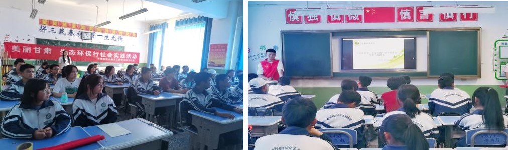 團(tuán)隊(duì)成員在天祝職業(yè)中專教務(wù)處主任張健瑞教師的指引來到21級3班,志愿者通過播放PPT向同學(xué)們宣講了生態(tài)環(huán)保的重要性以及國家對于生態(tài)環(huán)保的做出工作部署及法律法規(guī),并且向同學(xué)們進(jìn)行提問了生態(tài)環(huán)保知識、發(fā)放了調(diào)查問卷。