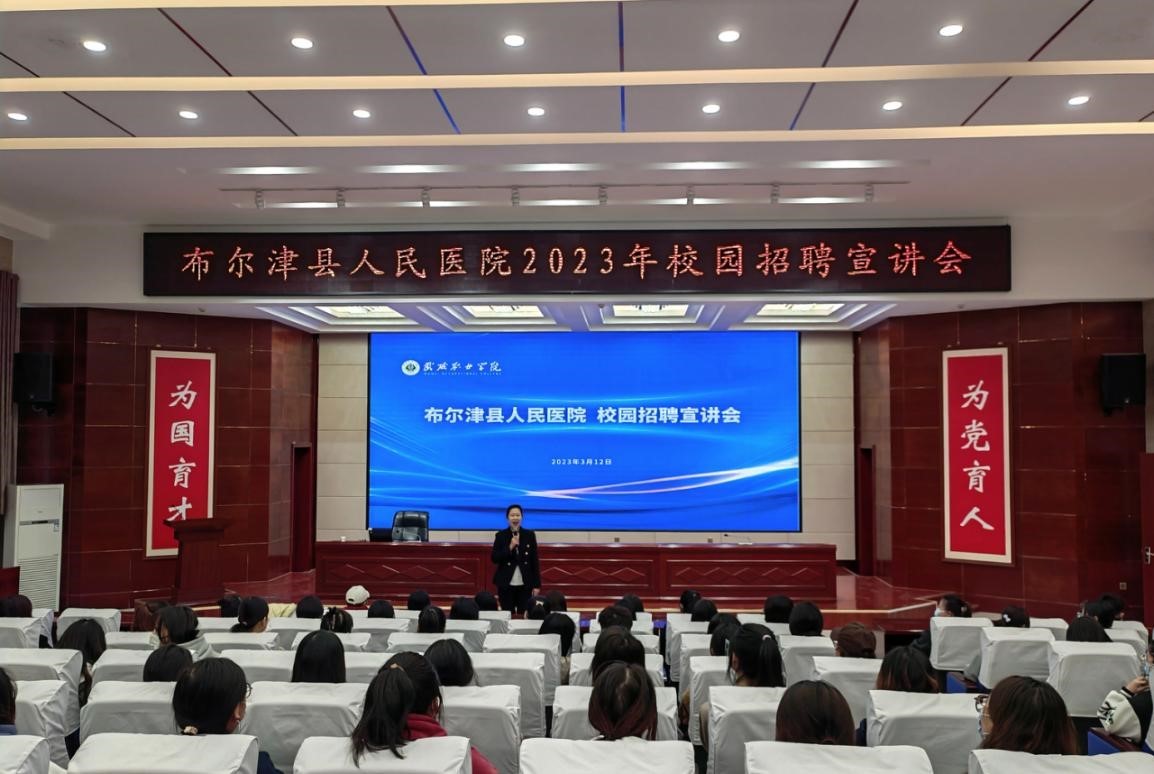 3月12日簽約儀式結(jié)束后,布爾津縣人民醫(yī)院黨委書記李娟在學(xué)生發(fā)展中心舉行了校園招聘宣講活動(dòng),護(hù)理學(xué)院約200名師生參加,部分學(xué)生現(xiàn)場(chǎng)達(dá)成實(shí)習(xí)就業(yè)意向。
