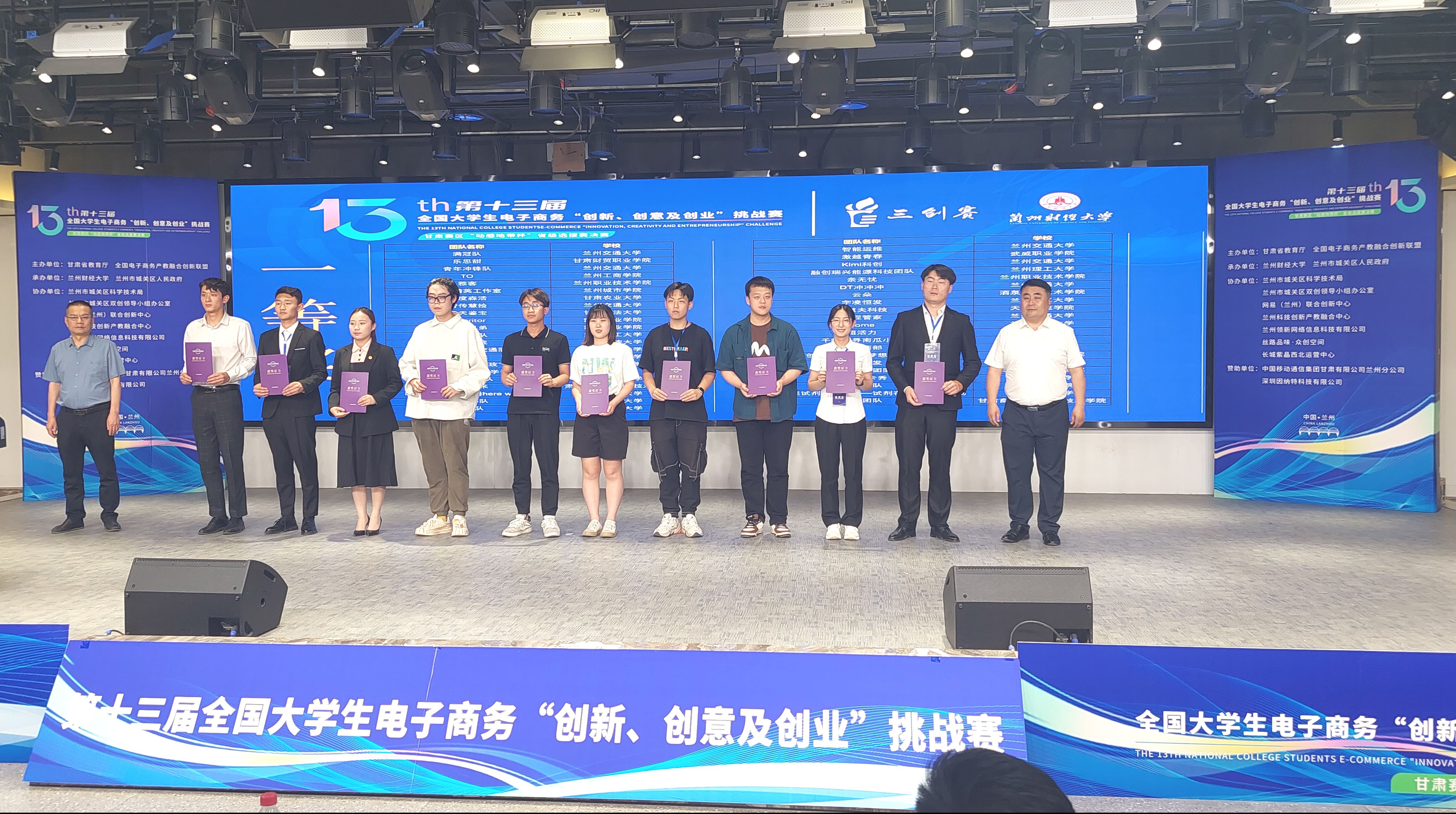 6月9日至11日,由甘肅省教育廳主辦l,蘭州財(cái)經(jīng)大學(xué)和城關(guān)區(qū)政府承辦的第十三屆全國(guó)大學(xué)生電子商務(wù)“創(chuàng)新、創(chuàng)意 、創(chuàng)業(yè)”挑戰(zhàn)賽甘肅賽區(qū)“動(dòng)感地帶杯”省級(jí)選撥賽決賽在蘭州科創(chuàng)園成功舉行。