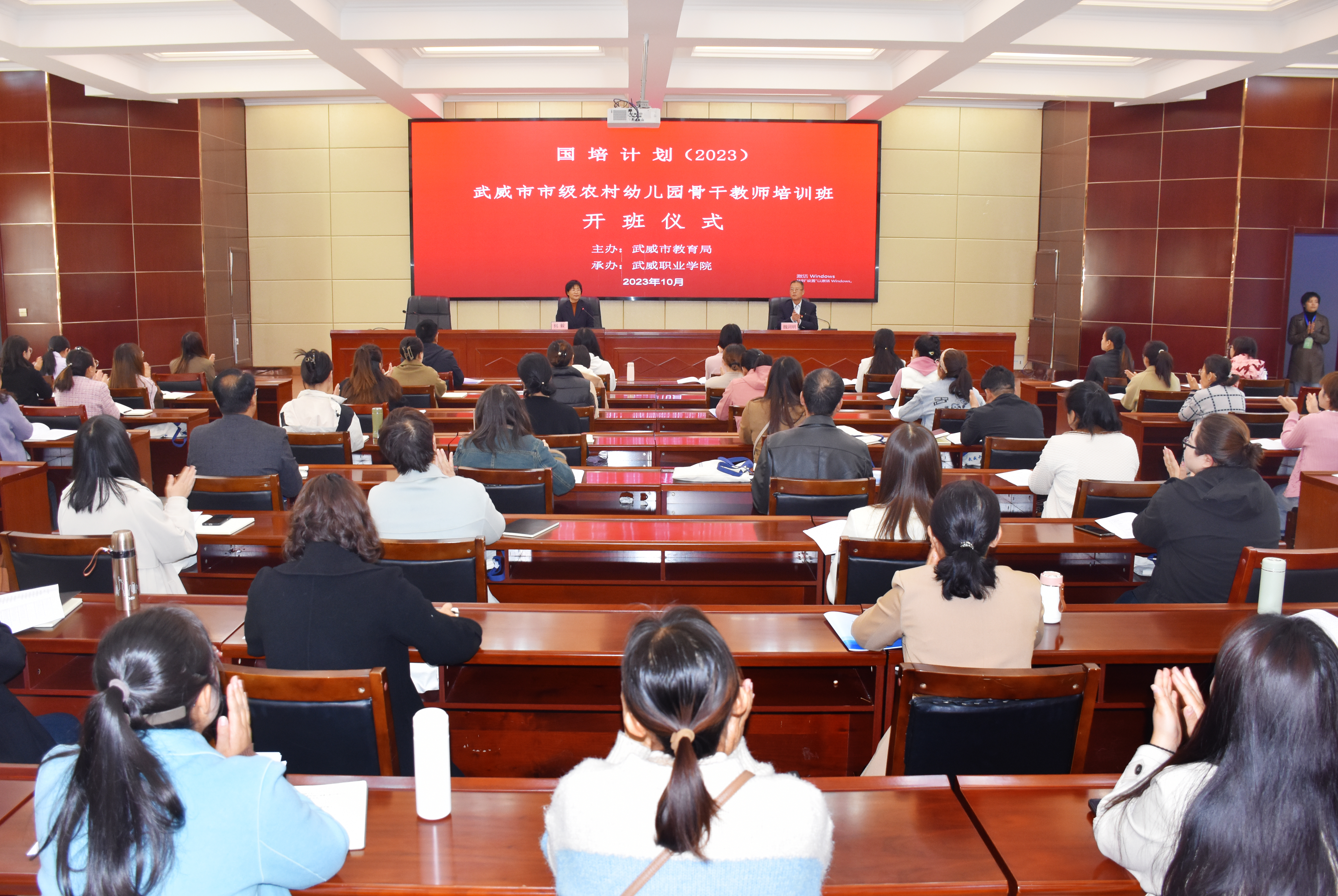 2023年10月26日上午,由武威市教育局主辦、武威職業(yè)學院承辦的“國培計劃(2023)”武威市市級農(nóng)村幼兒園骨干教師能力提升培訓在學院行樹樓北側報告廳舉行開班儀式。武威職業(yè)學院黨委委員、副校長何毅出席開班儀式。部分授課專家、培訓組織管理工作人員及65名參訓幼兒園骨干教師參加開班儀式。開班儀式由武威職業(yè)學院繼續(xù)教育學院院長魏潤明主持。