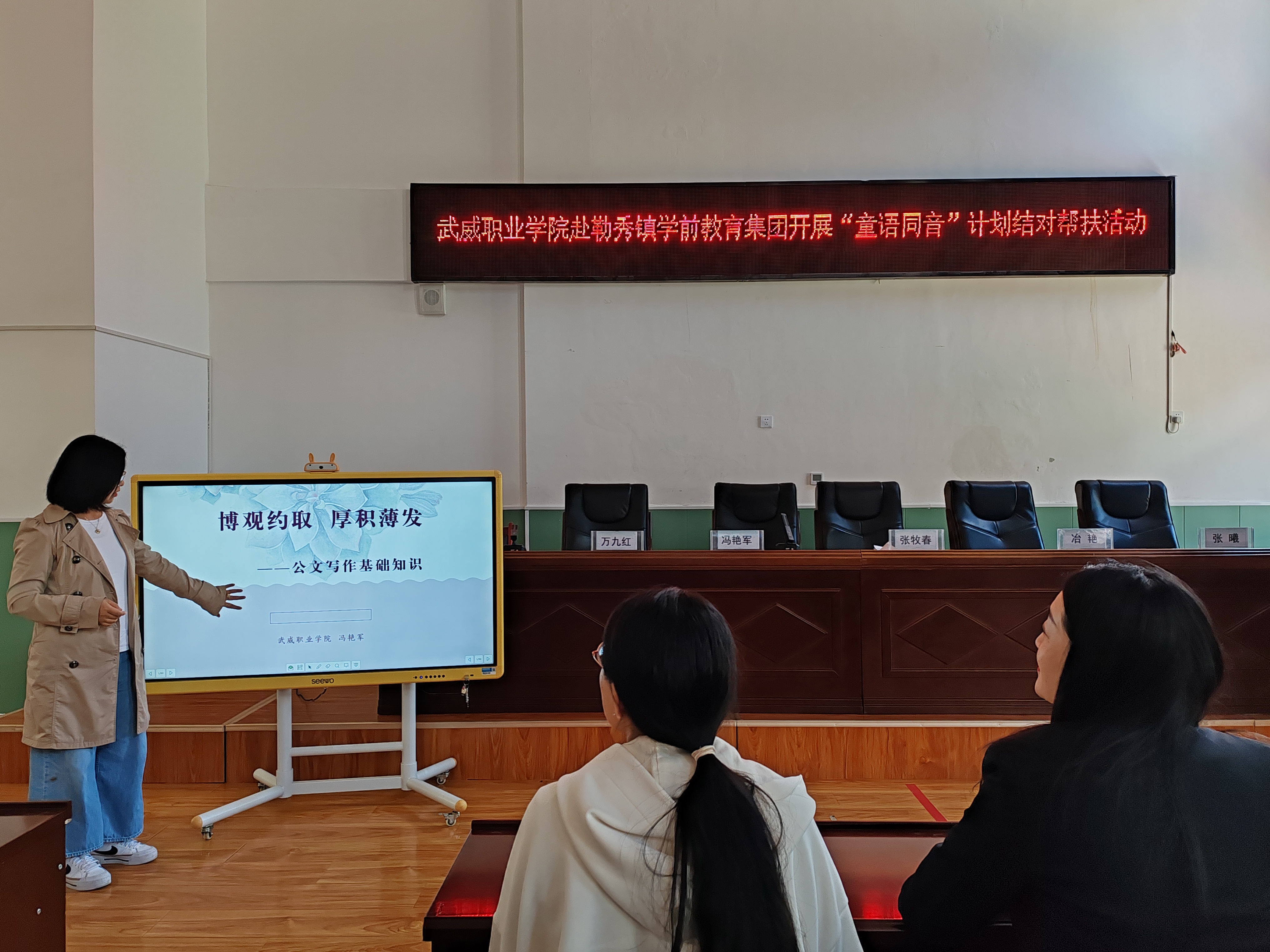 為充分發(fā)揮甘肅省語言文字推廣基地在服務(wù)地方發(fā)展、助力鄉(xiāng)村振興等方面的作用,6月23日,學(xué)校省級(jí)語言文字推廣基地“童語同音”志愿服務(wù)團(tuán)隊(duì)赴甘南藏族自治州勒秀鎮(zhèn)學(xué)前教育集團(tuán)開展“語言文字+技能”方面的培訓(xùn)。