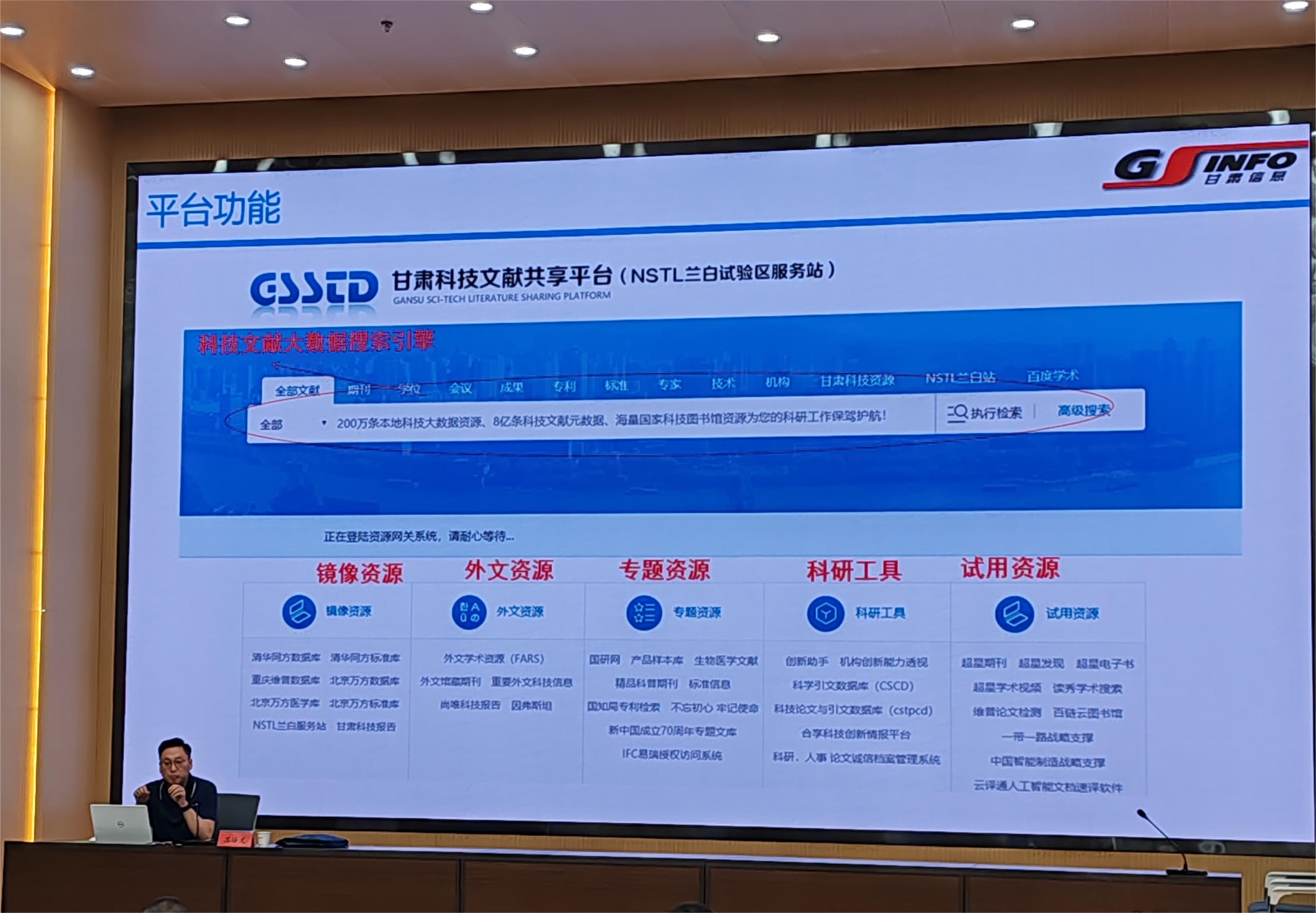 蘇海龍研究員以《如何利用科技文獻(xiàn)提升科研創(chuàng)新能力》為主題開展講座。講座分別從科技文獻(xiàn)的重要性、平臺(tái)功能及數(shù)據(jù)資源、醫(yī)學(xué)科研創(chuàng)新與文獻(xiàn)保障、科研相關(guān)問題和實(shí)際操作演示幾個(gè)方面講述科研項(xiàng)目申報(bào)中文獻(xiàn)檢索與文獻(xiàn)查閱的重要性,并介紹了甘肅科技文獻(xiàn)共享平臺(tái),展示了平臺(tái)的檢索功能,為大家拓寬了文獻(xiàn)檢索的渠道,提升了教師信息檢索能力。