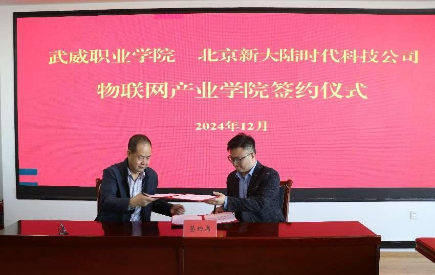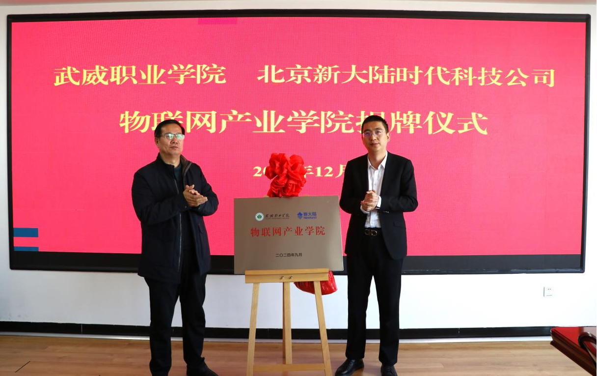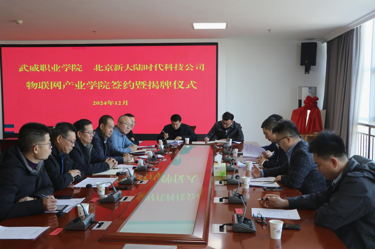 為全面深化產(chǎn)教融合,加強校企合作,進一步提高我校人才培養(yǎng)質(zhì)量。12月3日,學校在能源科技樓811會議室舉行武威職業(yè)學院和北京新大陸時代科技公司物聯(lián)網(wǎng)產(chǎn)業(yè)學院簽約暨揭牌儀式。北京新大陸時代科技公司西北區(qū)總監(jiān)劉寧、技術總監(jiān)樊斌,相關業(yè)務部門負責人,學校校長、黨委副書記張開禮、黨委副書記翟存祥、相關部門負責人及教師代表參加活動。黨委委員、副校長王永緒主持儀式。
