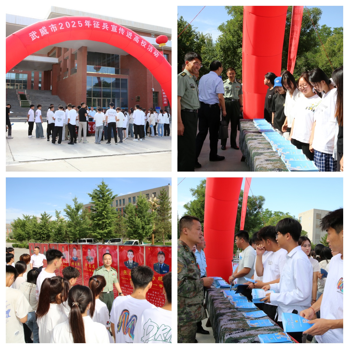 啟動儀式結(jié)束后,涼州區(qū)人民武裝部在學(xué)生發(fā)展中心前廣場舉行征兵宣傳咨詢活動,為在校學(xué)生宣講了2025年大學(xué)生征兵入伍流程和政策,學(xué)校征兵工作站同步開展了征兵宣傳報名咨詢活動。