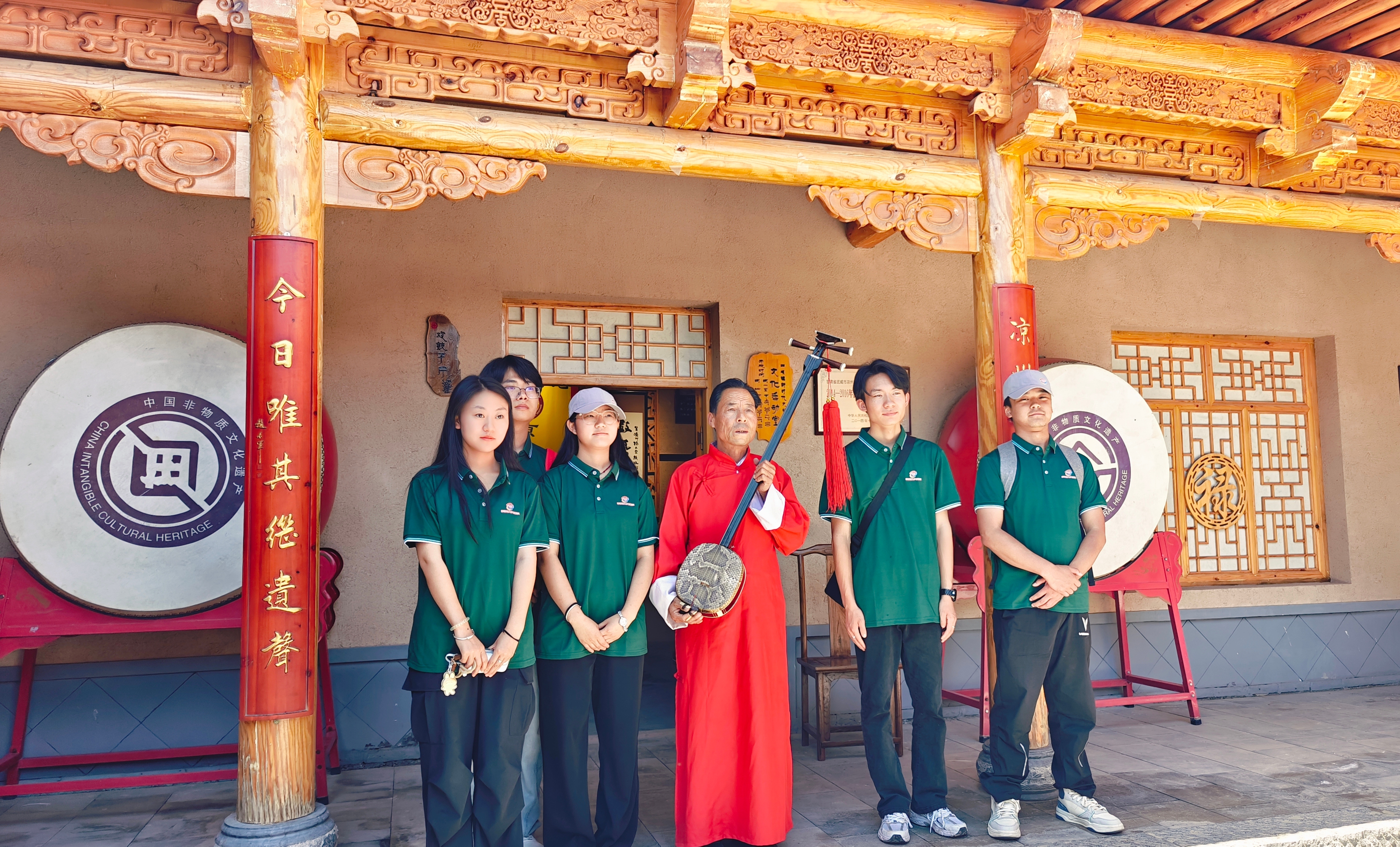 非遺民俗文化館當(dāng)天化身成為一座流動的非遺課堂,實踐團成員們圍坐在古樸的庭院中,聚精會神地聆聽當(dāng)?shù)刭Y深賢孝藝人董永虎老師深情演繹的經(jīng)典曲目。老藝人蒼勁而富有穿透力的嗓音,伴著三弦琴弦的顫動,將一段段蘊含忠孝節(jié)義、勸人向善的古老故事娓娓道來。那飽經(jīng)歲月洗禮的曲調(diào),仿佛穿越時空,在青磚黛瓦間回蕩,讓在場的每一位學(xué)子都深深沉浸其中,體味著這門古老說唱藝術(shù)所承載的歷史重量與人文溫度。