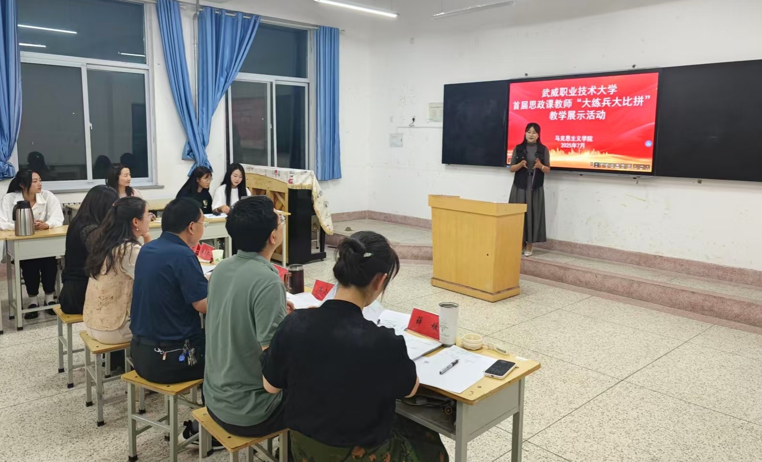 7月3日,武威職業(yè)技術(shù)大學(xué)首屆思政課教師“大練兵大比拼”教學(xué)展示活動在勵勤樓206教室成功舉辦。活動旨在推動新時代思想政治理論課高質(zhì)量發(fā)展,提升思政課教師教學(xué)水平,打造高素質(zhì)思政課教師隊(duì)伍。