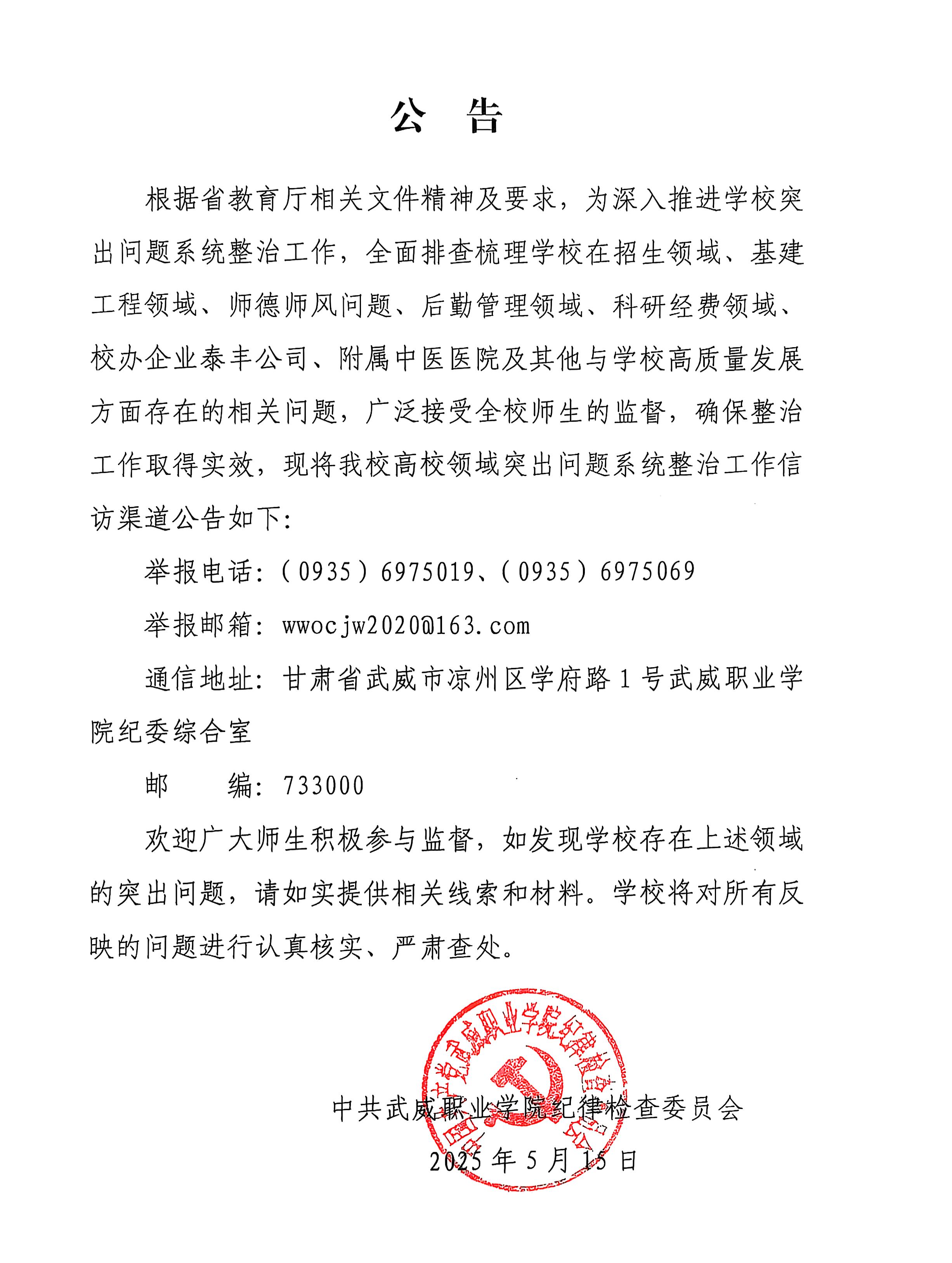 中共武威職業(yè)技術(shù)大學(xué)紀(jì)律檢查委員會、監(jiān)察專員…