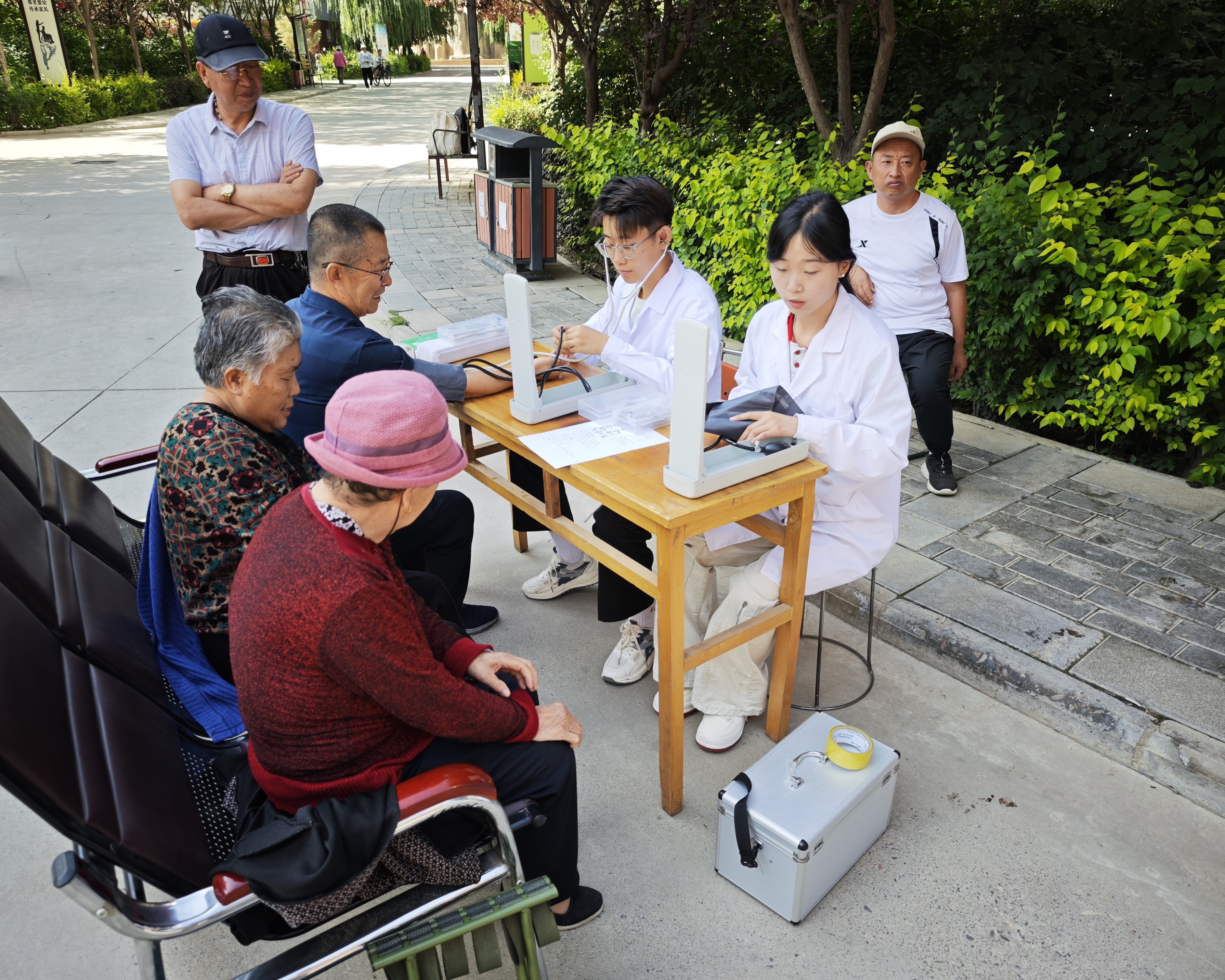 在指導(dǎo)老師的帶領(lǐng)下,志愿者們走進(jìn)武威市涼州區(qū)窯溝村,他們手持血壓計(jì)為村民細(xì)心測量,指尖傳遞著溫暖的守護(hù)。針對常見的高血壓問題,志愿者們將書本的醫(yī)學(xué)知識(shí)化作“少鹽多醋常走動(dòng)”的貼心叮嚀;艾灸棒在老人膝蓋處揮舞,老人們微闔雙眼,皺紋間舒展開寧靜的笑意。志愿者精心準(zhǔn)備了蘊(yùn)含中藥智慧的五色香囊,讓預(yù)防保健的種子在老人們心中生根發(fā)芽。