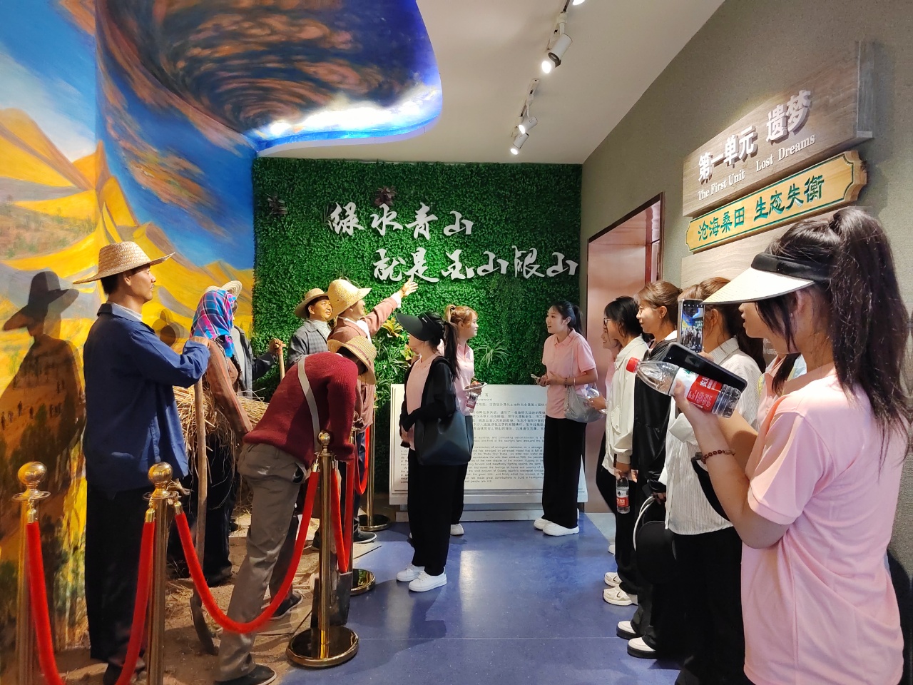 活動(dòng)中,教師黨員們沿著“六老漢”治沙足跡,參觀了八步沙治沙紀(jì)念館。一張張泛黃的老照片、一件件磨損的勞動(dòng)工具、一段段感人的治沙故事,生動(dòng)再現(xiàn)了上世紀(jì)80年代以來(lái),以郭朝明、賀發(fā)林等為代表的“六老漢”,面對(duì)“狂風(fēng)卷黃沙,荒灘無(wú)人家”的惡劣環(huán)境,立下“一棵也不能少”的誓言,用雙手在沙漠邊緣筑起綠色屏障的壯舉。三代人接力治沙,從“一棵樹(shù)”到“一片林”,從“沙進(jìn)人退”到“綠進(jìn)沙退”,用堅(jiān)守與奉獻(xiàn)詮釋了“艱苦奮斗、無(wú)私奉獻(xiàn)、鍥而不舍、久久為功”的八步沙精神。