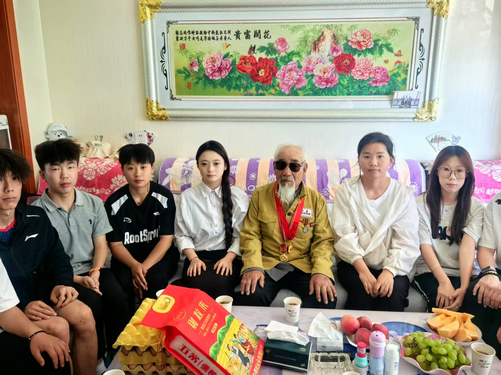 現(xiàn)居住于康寧新村八組、已93歲高齡的張克錄爺爺是參加過抗美援朝的退役老英雄。9月25日,堅(jiān)持駐村4年的靳東生老師與學(xué)?!八{(lán)天愛心協(xié)會(huì)”指導(dǎo)教師、青年大學(xué)生,帶著學(xué)校的牽掛、問候與崇敬,一起到張克錄爺爺家中,為老人送上關(guān)愛祝福,開展了一場“聆聽英雄故事、傳承紅色基因”的特別走訪、慰問活動(dòng)。張克錄爺爺精神矍鑠,身著掛有勛章的志愿軍軍裝,向師生們講述當(dāng)年志愿軍戰(zhàn)士冒著凜冽寒風(fēng)跨過鴨綠江,爬冰臥雪英勇戰(zhàn)斗的生動(dòng)事跡;驚心動(dòng)魄的戰(zhàn)斗故事,在老人樸實(shí)無華的語言中顯得格外感人,在場師生仿佛穿越時(shí)空,親眼目睹了志愿軍戰(zhàn)士們用血肉之軀筑起的鋼鐵長城;說到動(dòng)情處,老人和師生們的眼眶已經(jīng)濕潤,師生心靈受到了深刻洗禮、愛國情懷得到了高度升華。