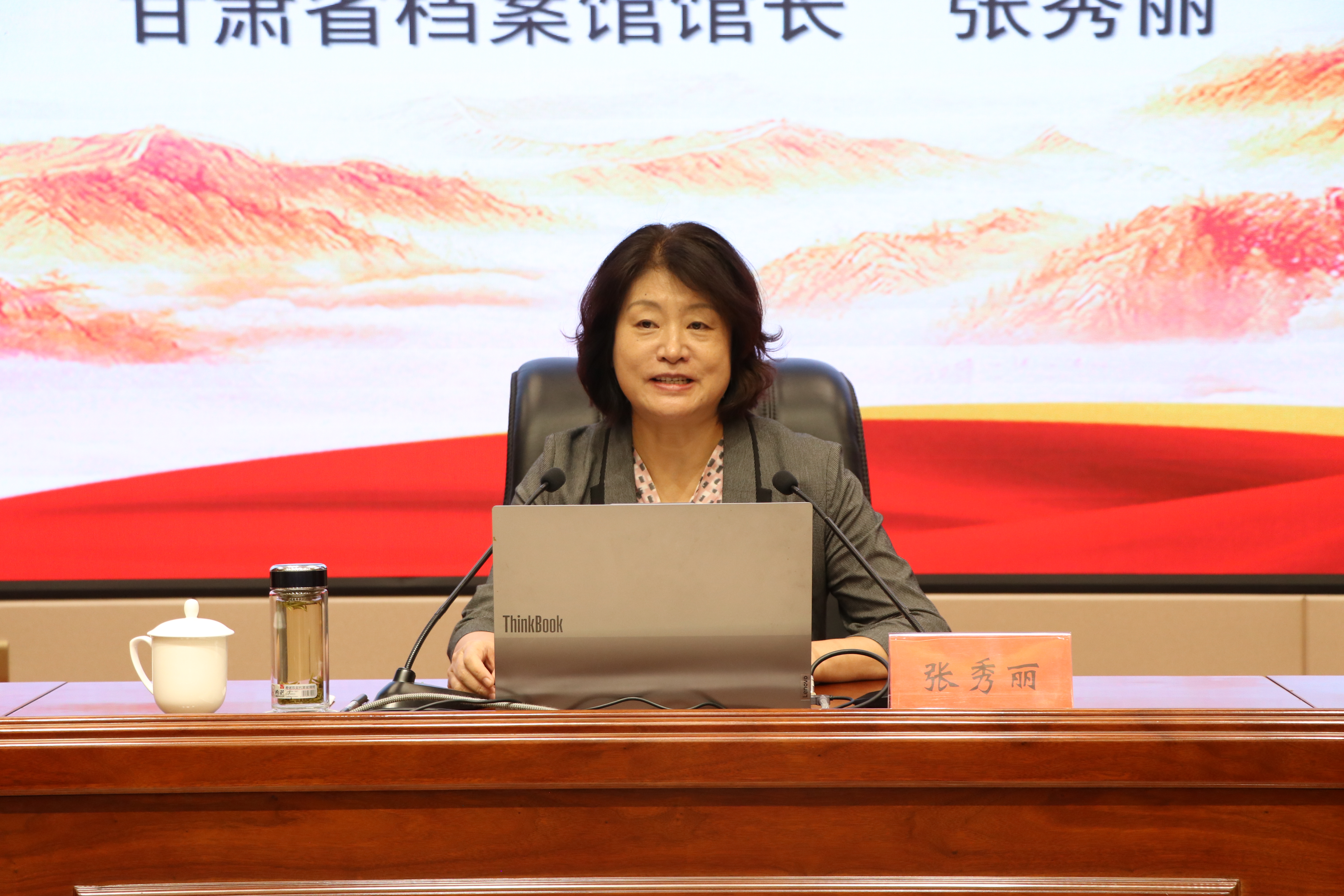 張秀麗結合自身從事檔案管理和文化研究的豐富經(jīng)驗,從檔案“存史、資政、育人”根本任務出發(fā),通過大量珍貴檔案文獻和歷史案例,系統(tǒng)闡述了檔案在記錄民族苦難輝煌、服務當代治國理政、培育時代新人中的重要作用。報告中,她以館藏漢代簡牘、革命烈士叢德滋00001號烈屬證、民勤治沙檔案、甘肅地震檔案等一批具有歷史代表性和地域特色的檔案為載體,帶領師生穿越時空,感受中華民族生生不息的精神力量,深刻解讀“勿忘昨天的苦難輝煌,無愧今天的使命擔當,不負明天的偉大夢想”的時代內(nèi)涵。
