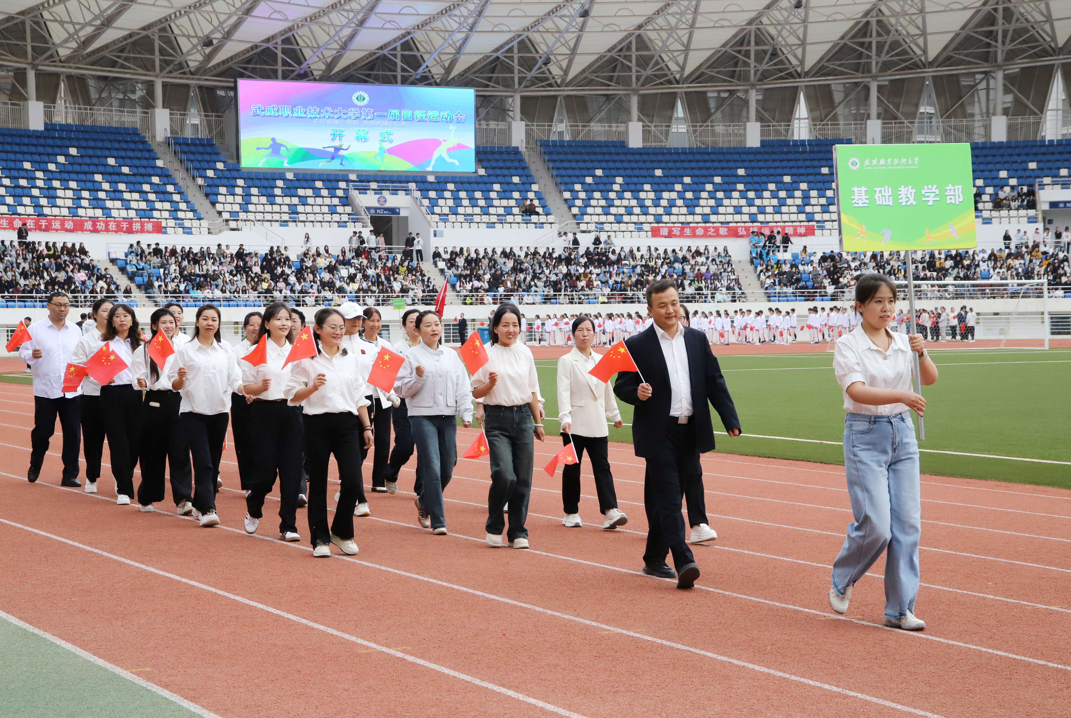 伴隨著激昂的《運動員進(jìn)行曲》,國旗護(hù)衛(wèi)隊、彩旗隊、裁判員隊伍、各學(xué)院方陣依次入場,隊列步伐整齊有力,口號堅定嘹亮,充分展示了師生良好的精神風(fēng)貌。