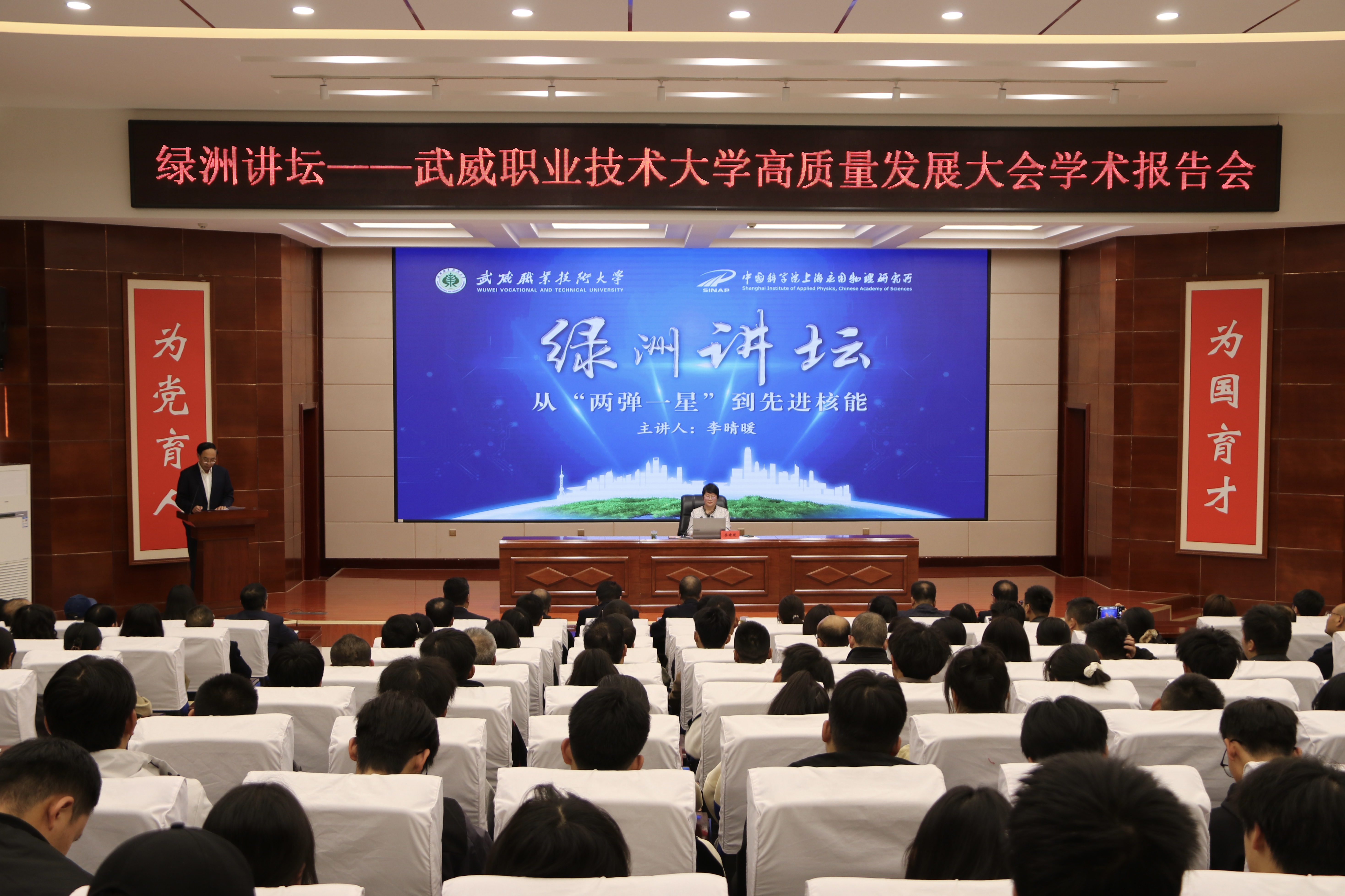 10月12日下午,中國科學(xué)院上海應(yīng)用物理研究所黨委書記、副所長李晴暖研究員,受邀做客武威職業(yè)技術(shù)大學(xué)“綠洲講壇”,以《從“兩彈一星”到先進核能》為題,為該校220余名師生代表帶來專題學(xué)術(shù)報告。