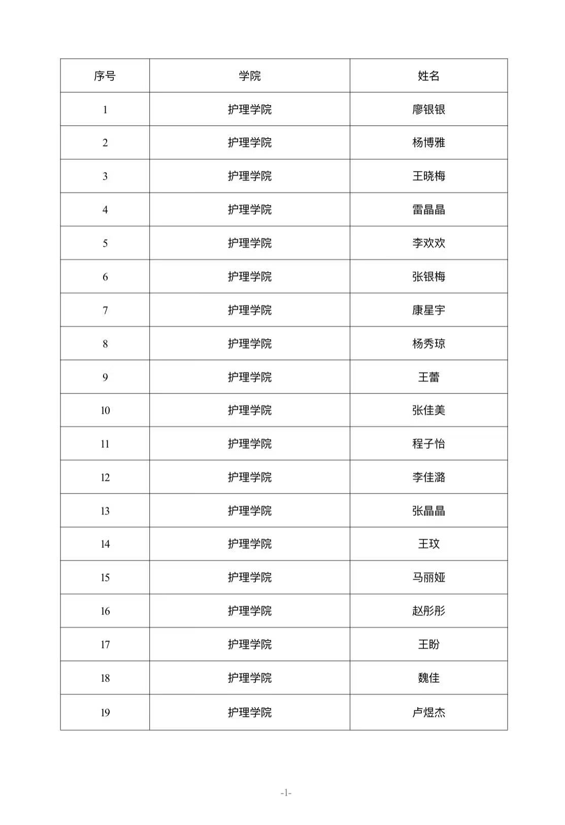 護理學院關于國家勵志獎學金推薦人選的公示
