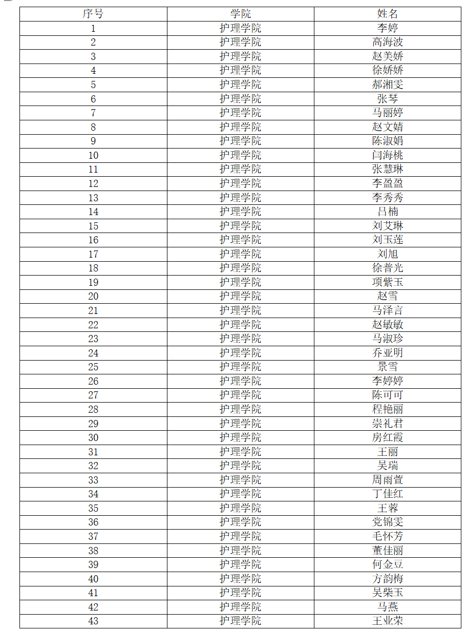 護理學院關于2025年獎補專項助學金推薦人選的公示