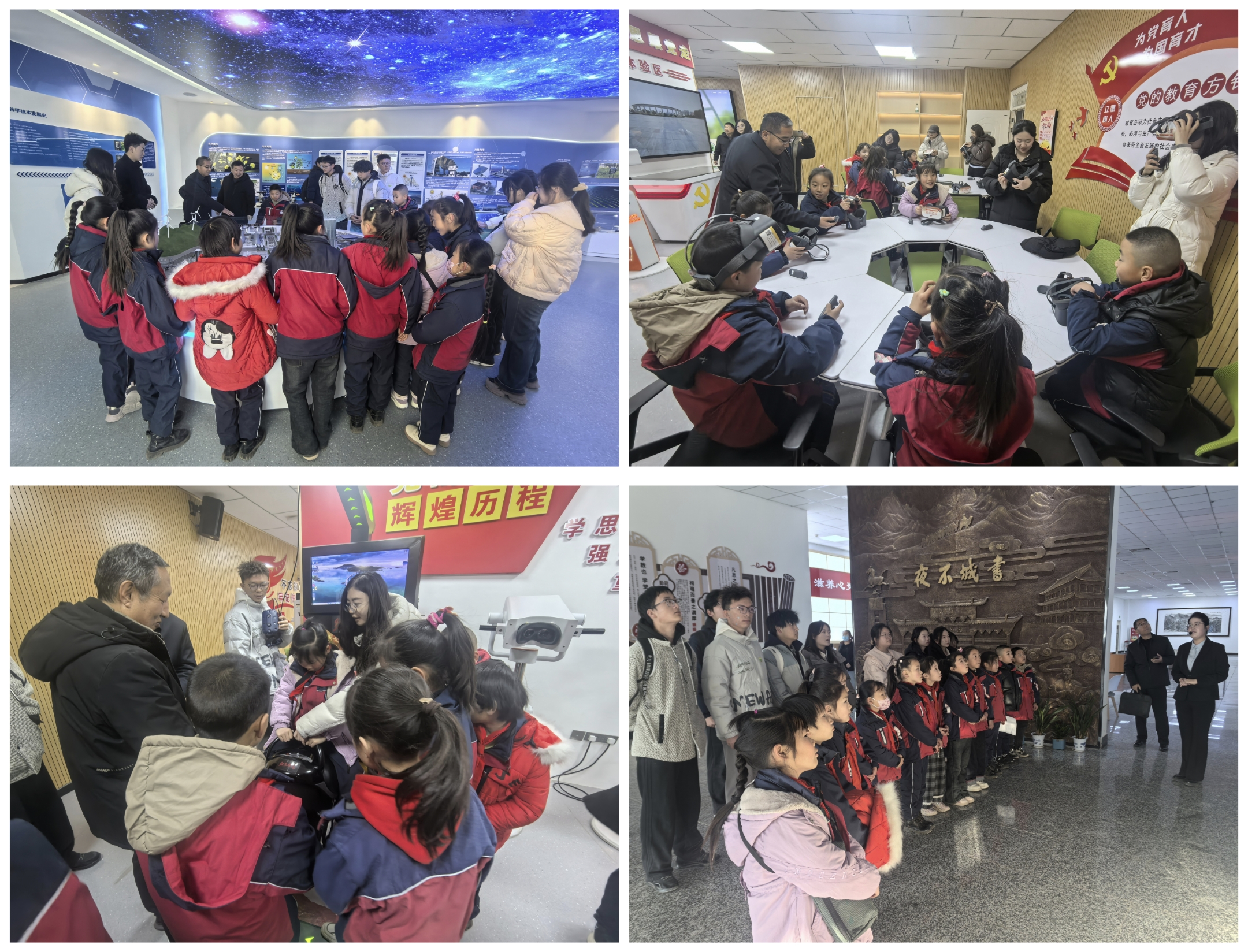 共建簽約儀式后,學生們參觀了學校圖書館、新能源科技館、課程思政教學研究示范中心等場館。孩子們穿梭于書香四溢的閱覽區(qū),駐足于各種先進的模型與互動裝置前,直觀感受VR技術賦能思政課堂的創(chuàng)新魅力,眼神中充滿了對知識的渴望與探索,這次參觀不僅是一次校園環(huán)境體驗,更是一次深刻的“潤物細無聲”思政教育,在孩子們心中播下了求知與創(chuàng)新的種子。