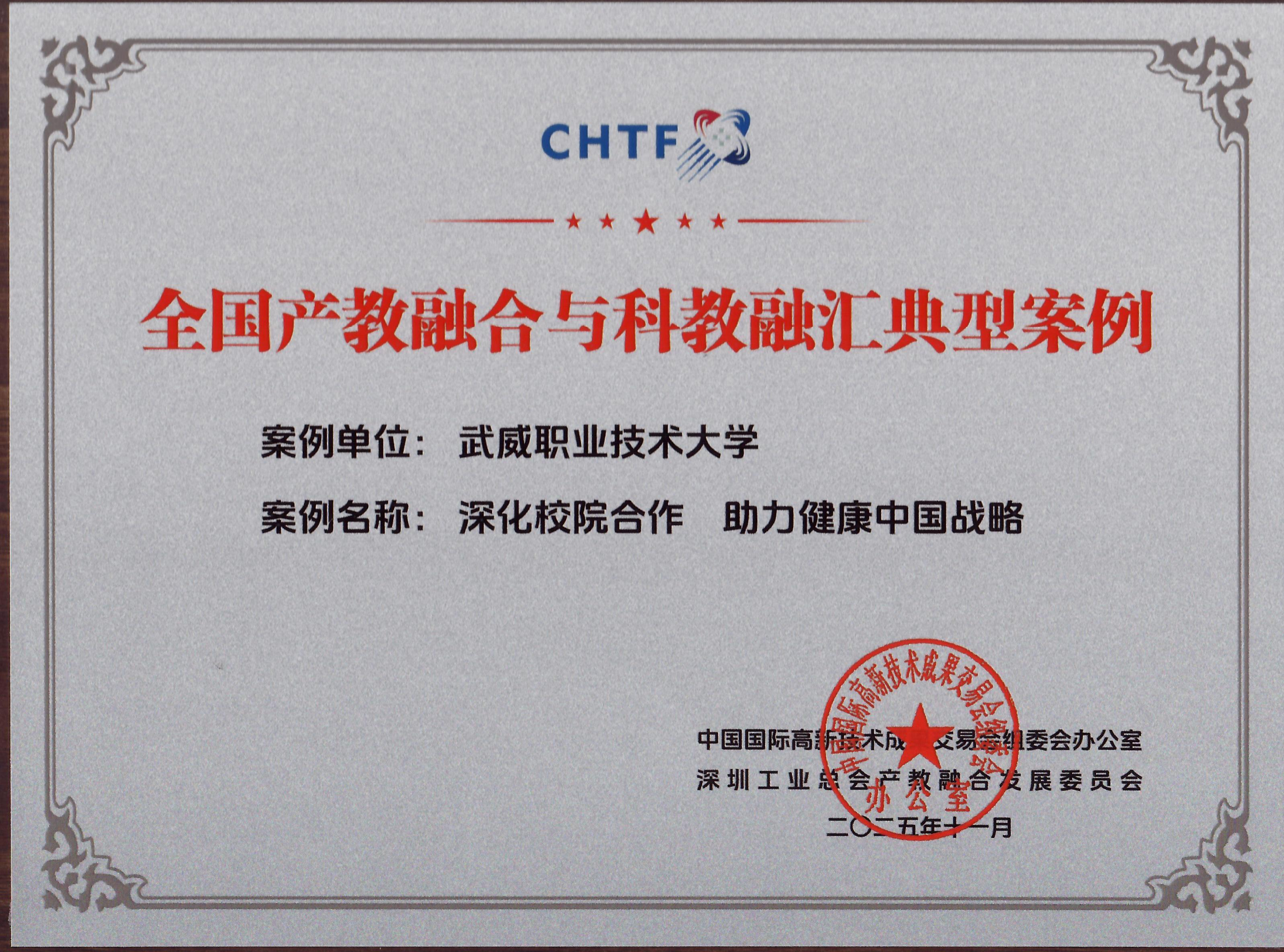 近日,第二十七屆中國國際高新技術(shù)成果交易會(huì)組委會(huì)公布產(chǎn)教融合與科教融匯典型案例評(píng)選結(jié)果,我校報(bào)送的《深化校院合作 助力健康中國戰(zhàn)略——武威職業(yè)技術(shù)大學(xué)與甘肅省武威腫瘤醫(yī)院開展校院合作新實(shí)踐》成功入選《全國產(chǎn)教融合與科教融匯典型案例匯編》,標(biāo)志著我校在實(shí)施科教融匯行動(dòng),推動(dòng)健康人才培養(yǎng)實(shí)踐獲得國家級(jí)平臺(tái)認(rèn)可。
