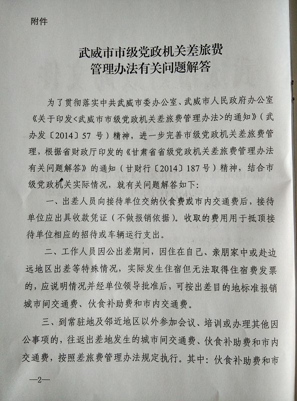 <轉(zhuǎn)發(fā)>武威市市級黨政機(jī)關(guān)差旅費(fèi)管理辦法有關(guān)問題解答